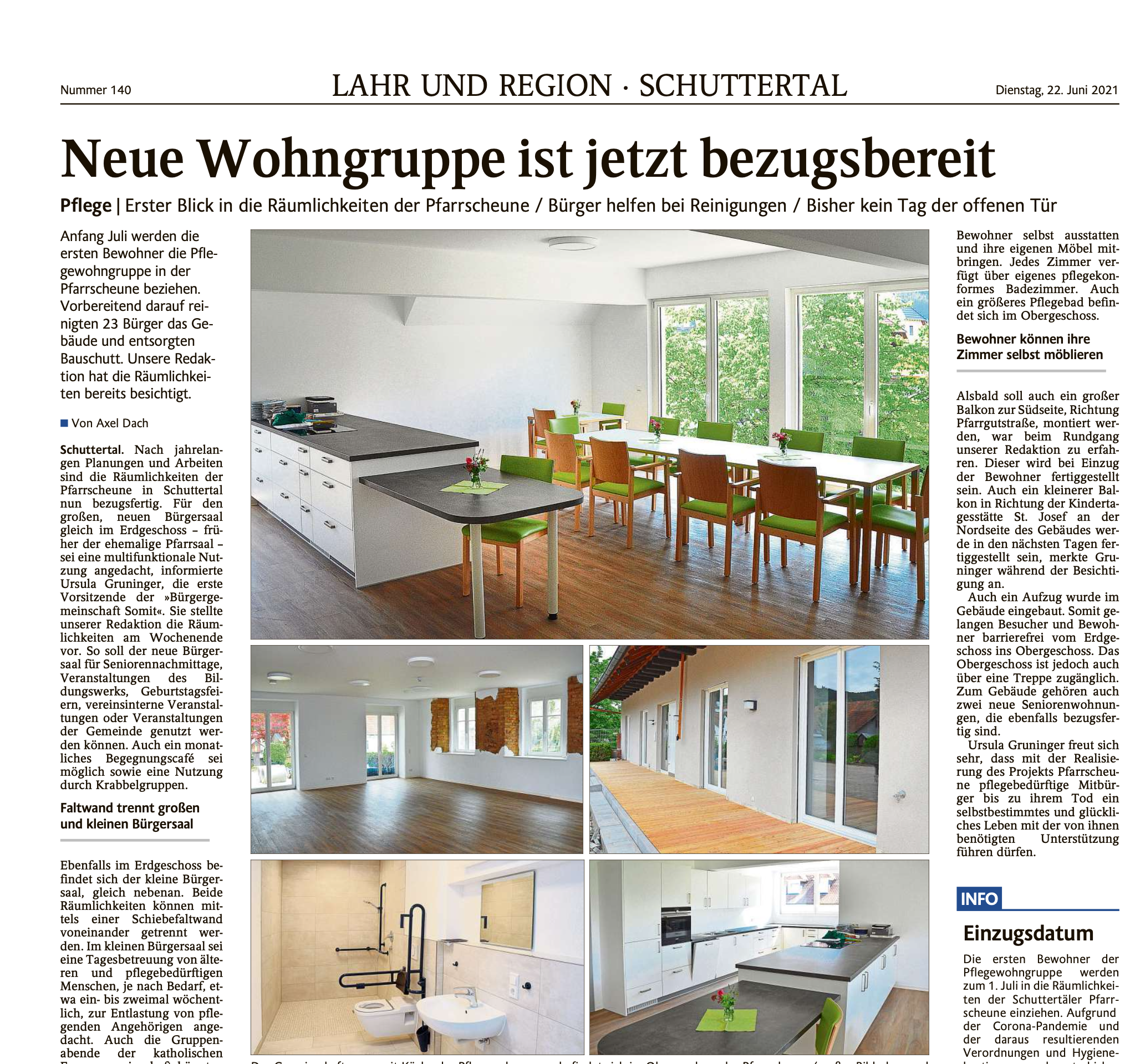Auszug aus dem Bericht in der Lahrer Zeitung vom 22.06.2021: „Anfang Juli werden die ersten Bewohner […]